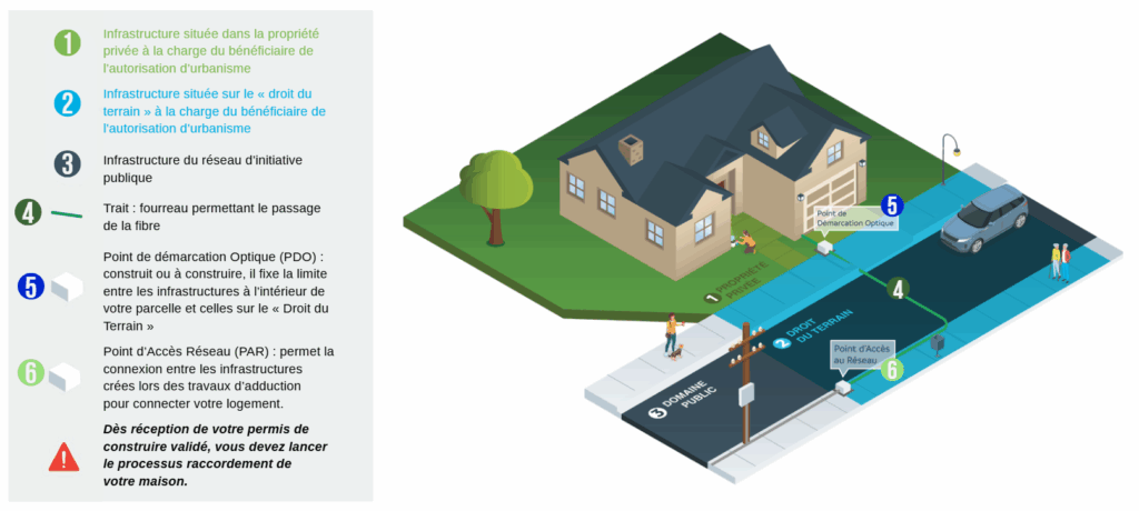 L’adduction correspond à l’ensemble des équipements nécessaires pour relier un logement au Point d’Accès au Réseau (PAR), y compris si celui-ci est de l’autre côté de la voirie.