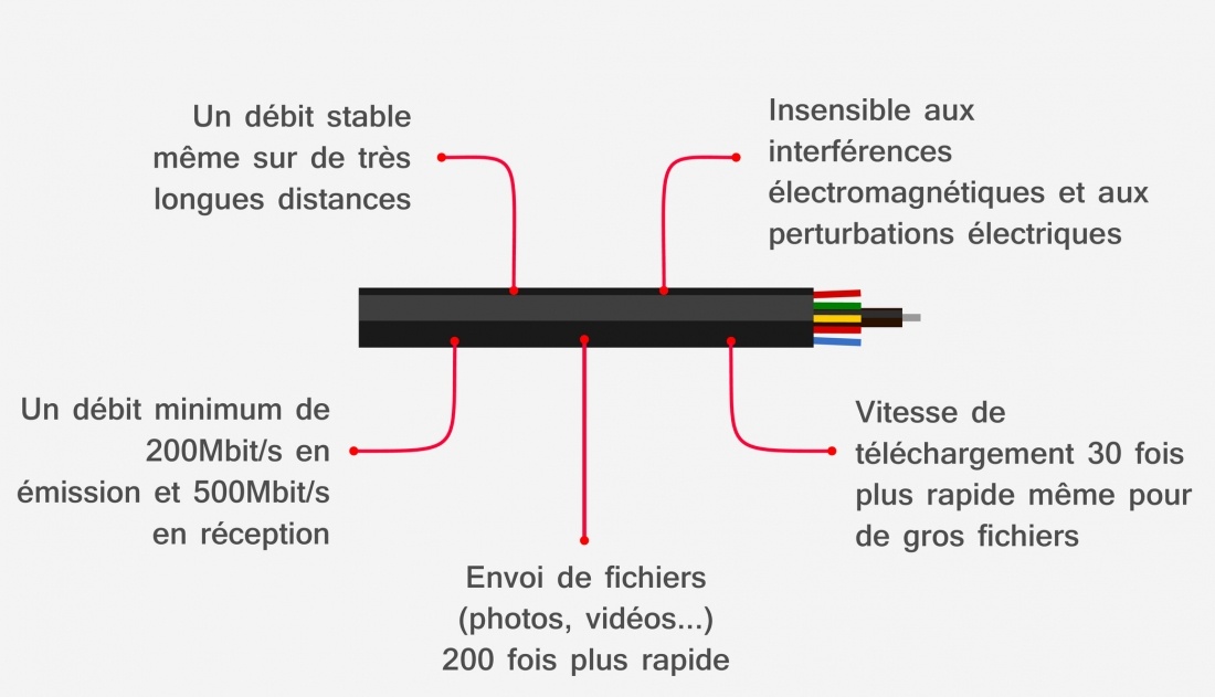 La fibre optique permet un débit aussi important en ville qu'à la campagne et est insensible aux orages.